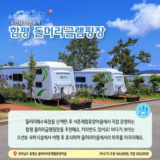 오션부 어촌숙박 함평 돌머리 글램핑장까지 이동